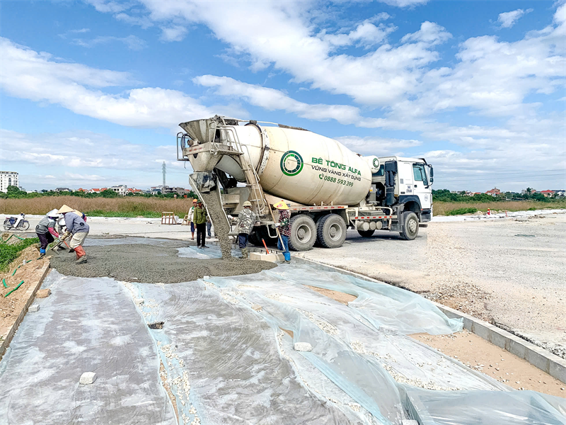 Bê tông được phối trộn sẵn tại nhà máy, sau đó đưa tới công trình bằng các xe bồn chuyên dụng. Gia chủ không cần không gian tập kết, lưu trữ nguyên vật liệu như: cát, đá, sỏi, xi măng...