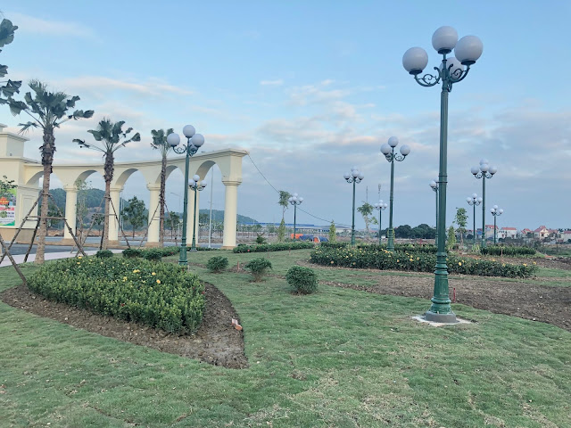 - Khu công viên bố trí hệ thống đường dạo, các khu cây xanh tập trung được thiết kế thành các ô cỏ kết hợp một số ô trồng hoa với những màu sắc đa dạng.