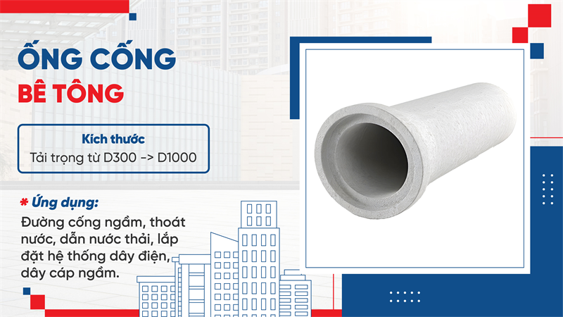 Tập đoàn Thành Công cung cấp nhiều loại ống cống với các tải trọng khác nhau, từ D300 đến D1000, phục vụ mọi nhu cầu thoát nước cho công trình dân dụng và công nghiệp.