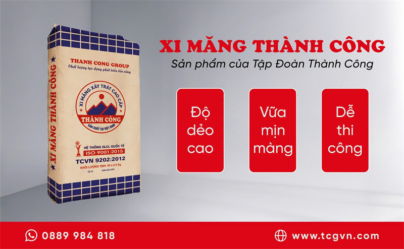 Độ bám dính cao : Với công thức đặc biệt, xi măng Thành Công có độ bám dính tuyệt vời, giúp kết dính các vật liệu xây dựng một cách chắc chắn, tạo nên công trình vững chắc theo thời gian.